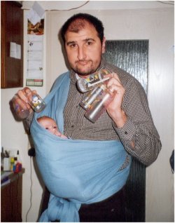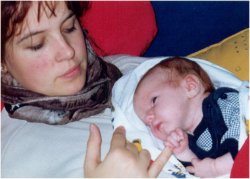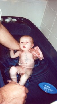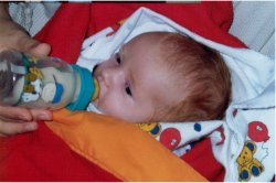 "Der Herr der Fläschchen". Ausserdem gibt er mit mir ganz schön an. Jedem anderen Papa den er trifft erzählt er das ich mindestens 10 Stunden Nachts schlafe. Komisch? Dafür hat der liebe Gott doch die Nacht gemacht, oder? Ausserdem sagte er auch immer: "Wie Ihre Mama" |